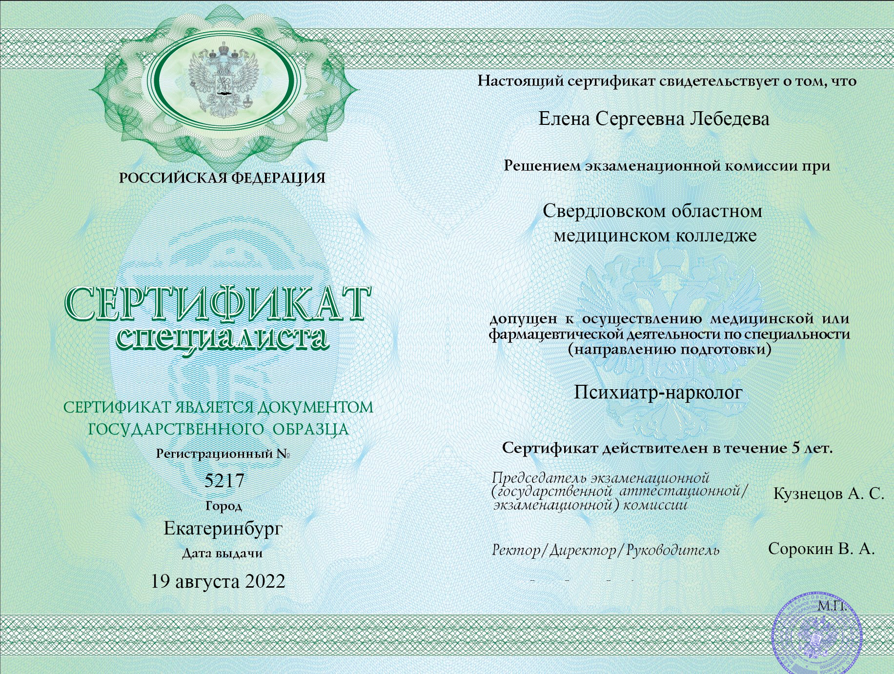 Елена Сергеевна Лебедева врач нарколог клиники доктора Стукаловой в Тамани